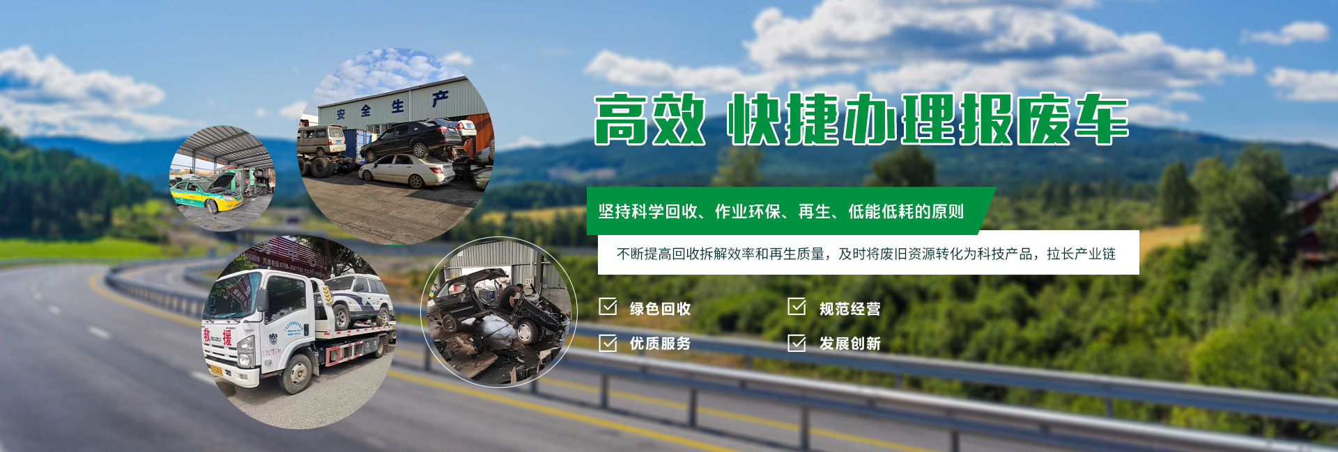 本公司長期回收報廢汽車,報廢貨車,黃標車,工程機械等,辦理本地,異地車輛報廢注銷業(yè)務(wù)。? 動車所有人應(yīng)當在報廢期滿前將機動車交售給機動車回收企業(yè),由機動車回收企業(yè)將報廢的機動車登記證書、號牌、行駛證交公安機關(guān)交通管理部門注銷。機動車所有人逾期不辦理注銷登記的,公安機關(guān)交通管理部門應(yīng)當公告該機動車登記證書、號牌、行駛證作廢。 報廢電話:4008-565-122